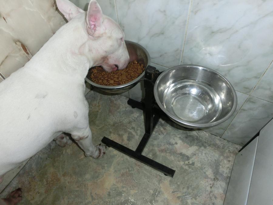 Среди булей есть настоящие гурманы, однако не стоит потакать их капризам и баловать лакомствами с хозяйского стола. Щенков следует кормить до 6 раз в день. К году число кормлений сокращают до 3, а с 1,5 лет питомцу достаточно двух приемов пищи. Не следует мешать животному во время еды: в ином случае оно может проявлять недовольство в виде рычания, оскала.