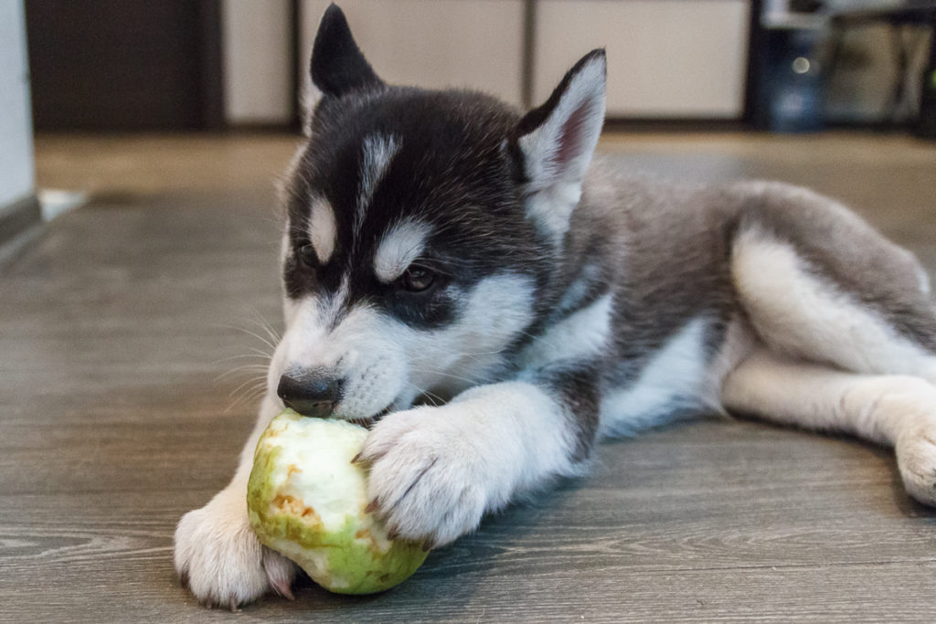 Для кормления хаски подходят сезонные фрукты и овощи. Для профилактики авитаминоза желательно добавлять в пищу свежую зелень.