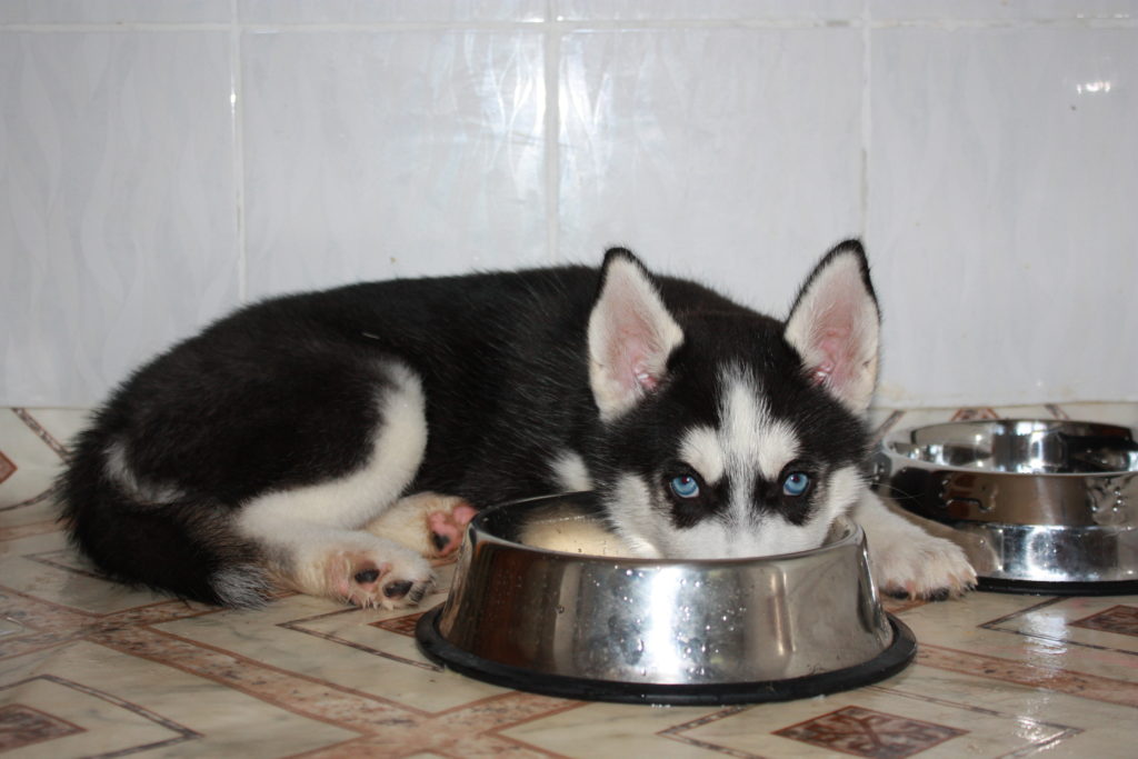 Кормление щенка должно происходить строго по расписанию. Маленькие хаски до 12 недель должны получать пищу 4 раза в день, до 26 недель – трижды в сутки. Собак старше 6 месяцев достаточно кормить дважды в день. Такой режим является оптимальным.