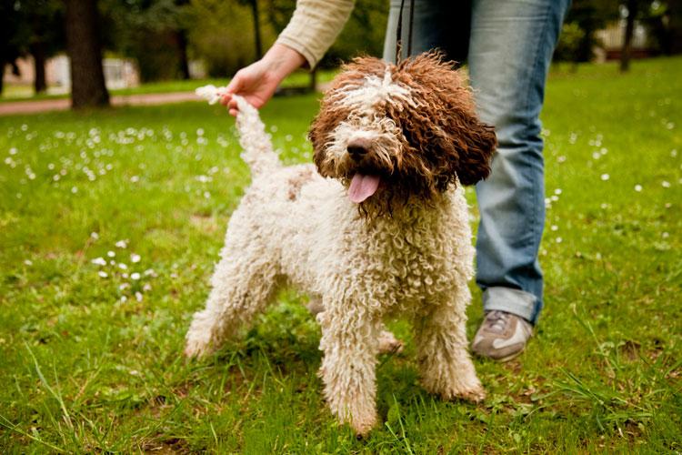 Лаготто также можно обучить поиску предметов. Для этого необходимо создать ассоциативные связи: например, чтобы ключи у него ассоциировались с сухариком, а очки – с хрящевой косточкой. Увидев угощение, собака поймет, что ей нужно искать.