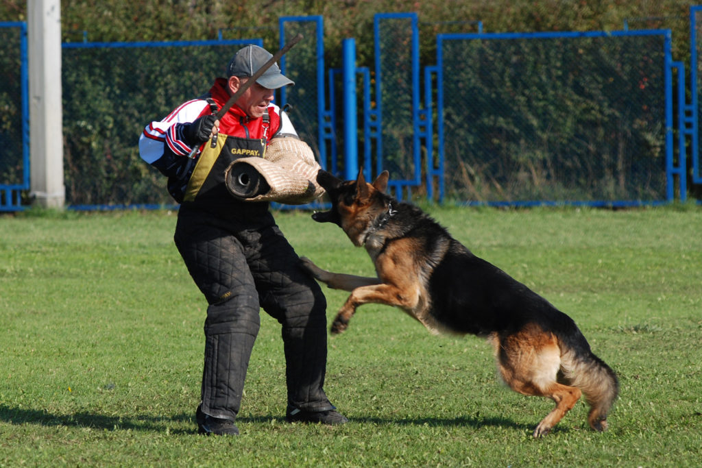 Попытка самостоятельно вызвать у питомца агрессию – огромная ошибка со стороны его владельца. Для обучения пса командам «Взять», «Фас» и «Охраняй» требуются 3 условия: закрытая территория, исключающая нахождение на ней людей, защитный костюм и опытный инструктор-кинолог.