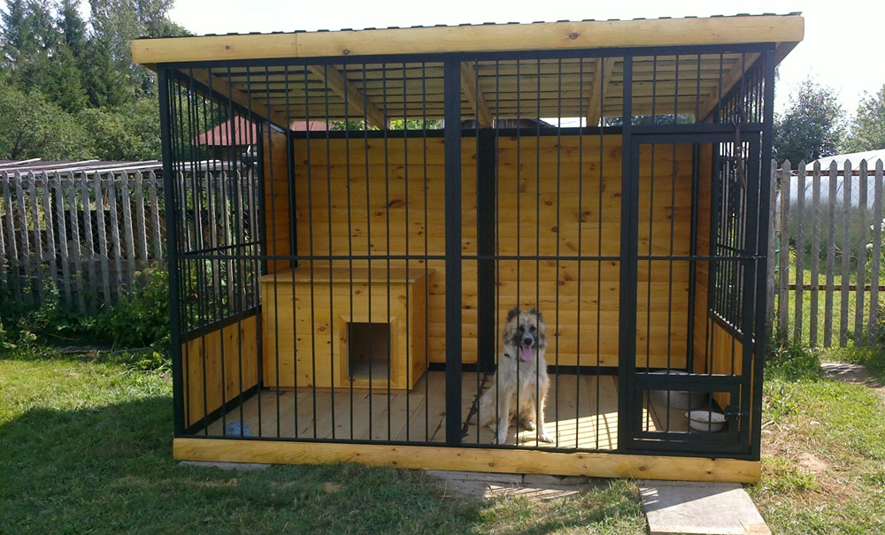 Считается, что лучший вариант жилища для пса – конструкция из дерева и кованой решетки. Как выглядят различные варианты сооружений, можно посмотреть на фото.