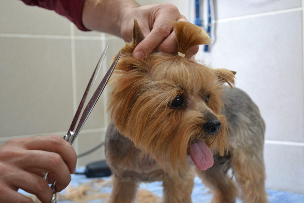 Во время гигиенической стрижки йорку подравнивают челку, шерсть на ушах, а также обрабатывают подушечки лап, область ануса и пах. После завершения стрижки питомца купают.