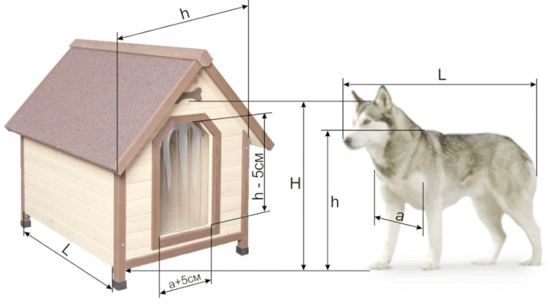 Ширина: Длина будки должна равняться длине собаки от носа до хвоста. Ширина лаза: Ширина входа должна составлять ширину груди собаки + 5-8 см. Высота лаза: Высота входа должна быть на 5 см больше высоты собаки в холке. Размеры лучше делать чуть больше, чем меньше, чтобы питомец чувствовал себя комфортно.