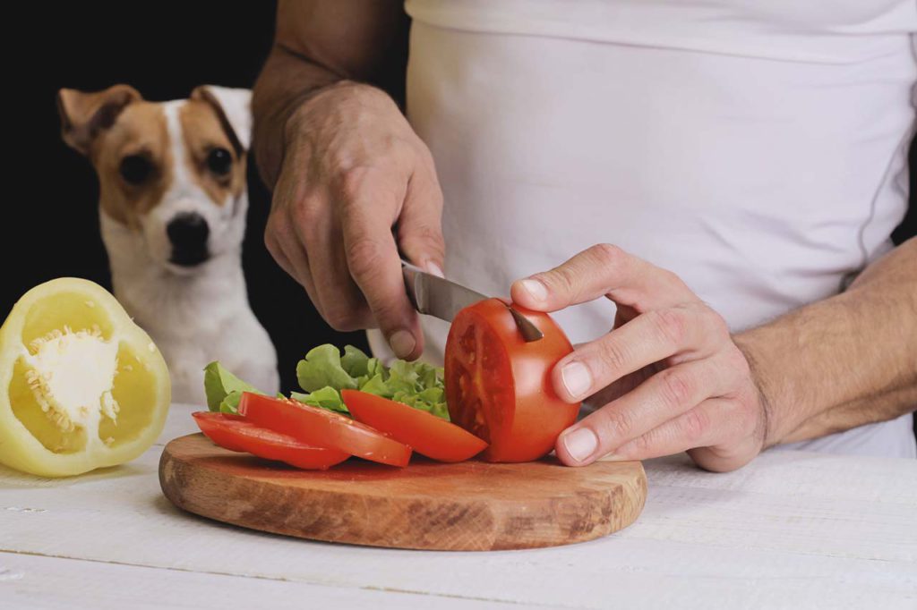 Мнения владельцев собак по этому вопросу расходятся. Приверженцы системы собачьего питания БАРФ убеждены, что из-за неспособности организма этих животных к перевариванию растительной клетчатки овощи необходимо сильно измельчать. Они объясняют свое мнение тем, что дикие прародители современных четвероногих друзей человека волки, поймав травоядную жертву, съедали и ее желудок, в котором находилась пережеванная растительная пища. Так они хоть как-то удовлетворяли потребность организма в клетчатке.