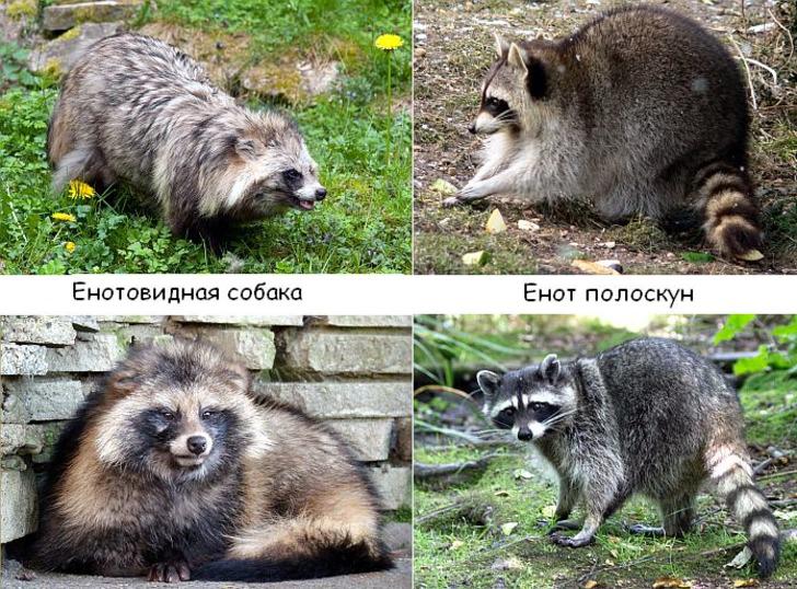 Несмотря на внешнее сходство, енотовидные собаки и еноты относятся к совершенно разным семействам: первые принадлежат к псовым, а вторые – к енотовым. Различия между ними можно увидеть на фотографиях. Вот несколько ключевых отличий: