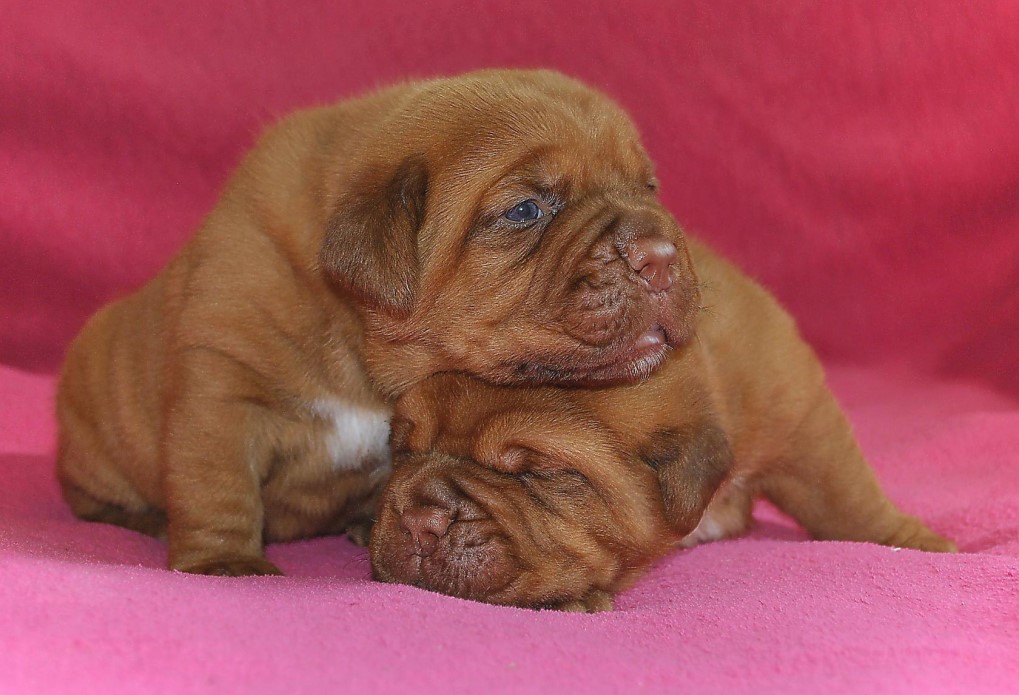 У сук также могут возникнуть трудности при естественных родах: таз у бордоского дога достаточно узкий, в то время как головы щенков довольно крупные. Владельцам следует заранее предусмотреть возможность оказания ветеринарной помощи щенной суке, так как ей может понадобиться кесарево сечение.