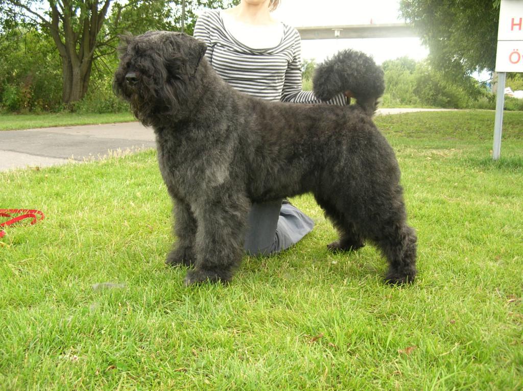 | Особенности внешности | Размер: Кобели: 62-68 см, 35-40 кг. Суки: 59-65 см, 27-35 кг. Шерсть: Густая, жесткая, взъерошенная, с плотным подшерстком. Окрас: серый, тигровый, черный, палевый. Голова: Массивная, с выраженными бровями и бородой, придающими характерный вид. Уши: Купированные или естественные, высоко посаженные. Хвост: Купированный или естественный, высоко посаженный. |