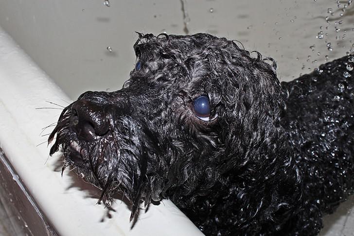 Купать керри-блю рекомендуется по мере загрязнения со специальным шампунем, а подстригать не реже двух раз в год. Гигиеническая стрижка в идеале должна проводиться раз в 2,5–3 месяца, чтобы убрать лишнюю шерсть около глаз, рта, ушей, под хвостом. Приучать питомца к купанию и грумингу нужно с детства, чтобы в зрелом возрасте с этим не возникло проблем.