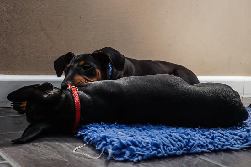 Шерсть у собак короткая, жесткая и гладкая. У здорового животного шерстяной покров блестит. Стандартный окрас – темно-черный с подпалом. Подпалины имеют коричневый оттенок (цвет красного дерева). Между основной окраской и подпалом наблюдается четкая граница.
