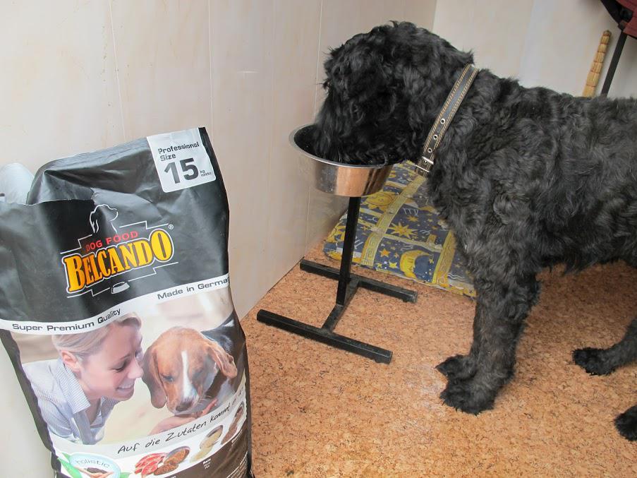 Для кормления черного терьера нужно приобрести эмалированную миску (пластмассовые не годятся – они непрочные и их нельзя кипятить) и подставку для нее. Миски с едой и водой должны находиться на уровне плечелопаточного сочленения – в этом случае собака во время приема пищи будет дополнительно вырабатывать стойку, а также приучится не подбирать ничего с земли.