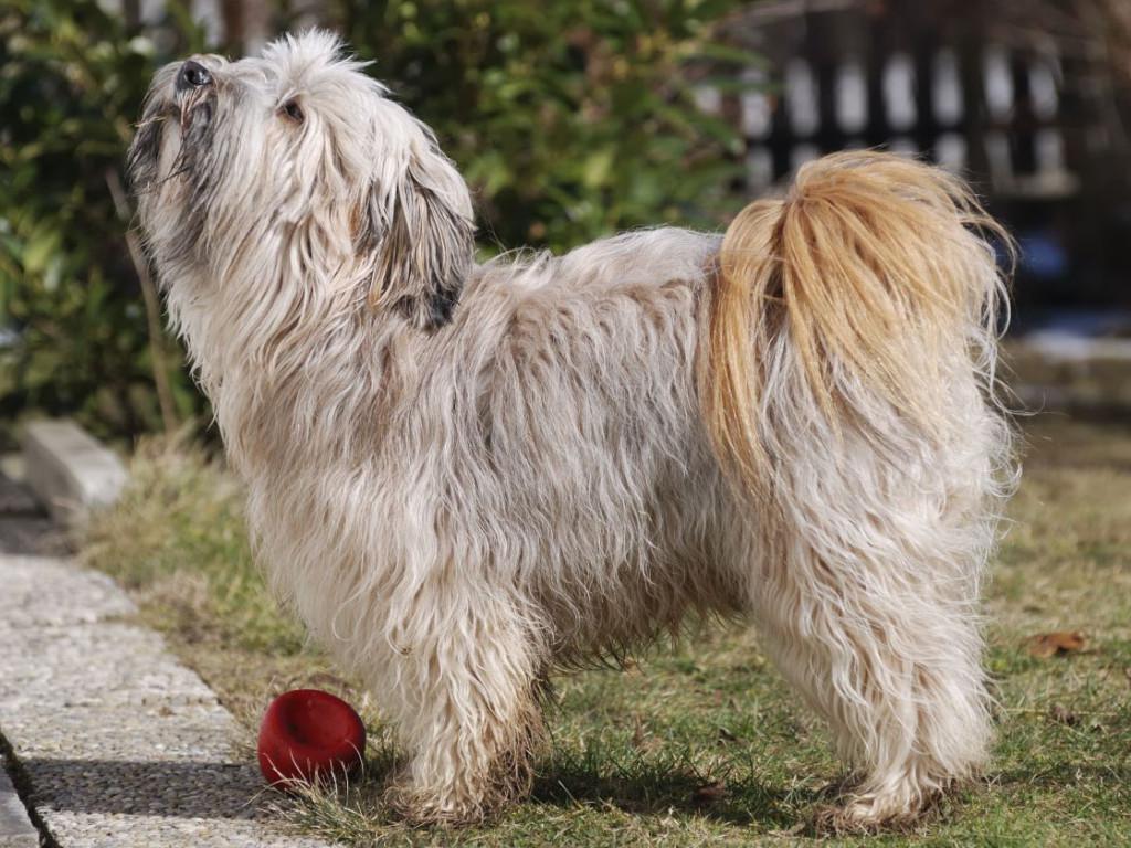 Цвет шерсти может быть любым, за исключением коричневого. Собаки золотого окраса – это большая редкость. На фото ниже представлено изображение типичного тибетского терьера.