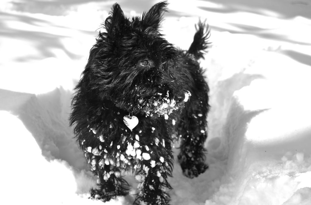 В сырую погоду рекомендуется защищать шерсть питомца легким комбинезоном. В дождь подойдут обычная попона или дождевик для собак. Скотч-терьеры легко переносят холод благодаря своему густому и теплому подшерстку.