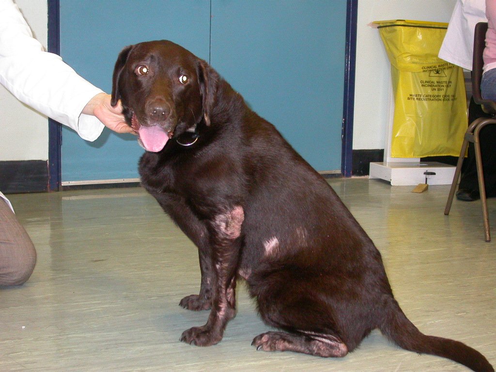 Наиболее опасным заболеванием, вызванным грибком, является стригущий лишай. Заражение проявляется в виде четко очерченных красных пятен, на которых отсутствует шерсть, как показано на изображении. Пораженные участки сильно зудят, что вызывает у собак постоянный дискомфорт.