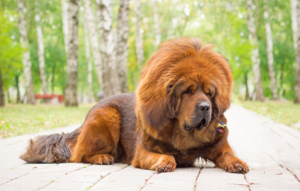 - Тибетский мастиф. Представители этой древней породы служили в горных монастырях и охраняли их от диких хищников. Мохнатые исполины семейства собачьих достигают 70 см в холке, весят 70-73 кг. Мастифы не агрессивны, они прекрасно уживаются с детьми и преданно охраняют всех членов семьи. Длинная и густая шерсть собак окрашена в самые разные цвета.