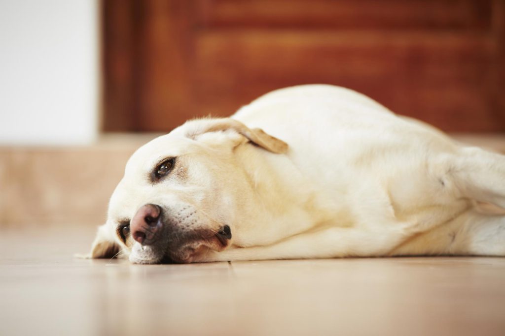 - беременная собака меньше ест и играет;