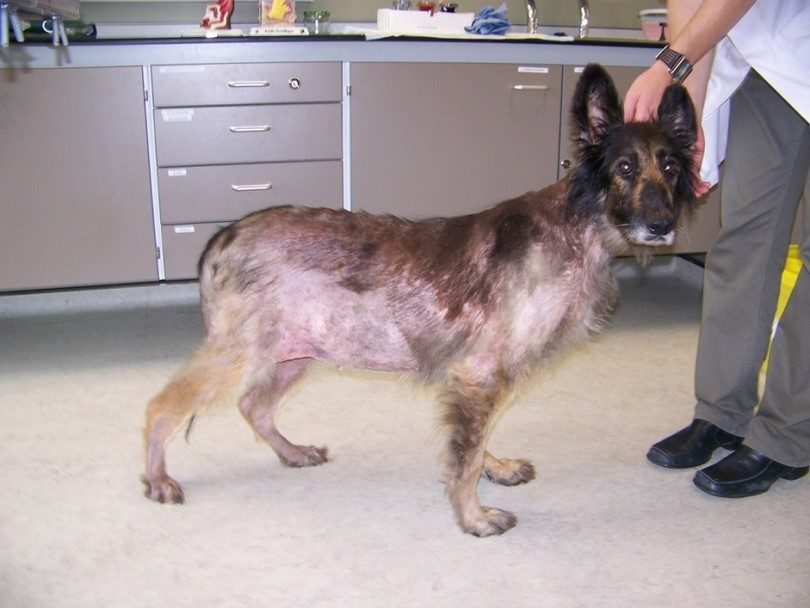 Что делать, если у пса шелушится кожа, выпадает шерсть клоками и появляются проплешины?