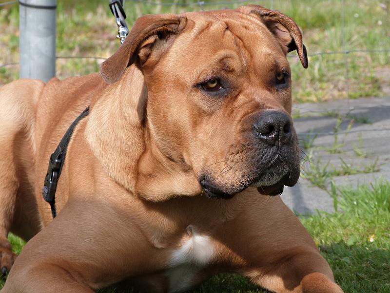 | Внешний вид | Общее впечатление: Мощная, крепкая собака среднего размера, с хорошо развитой мускулатурой. Производит впечатление силы и выносливости. Голова: Крупная, квадратная, с широким черепом и выраженным стопом. Морда широкая, средней длины. Глаза: Овальные, среднего размера, темного цвета. Выражение внимательное и уверенное. Уши: Высоко посаженные, небольшие, треугольной формы, купируются или остаются естественными (висячими). Шея: Мощная, мускулистая, средней длины. Корпус: Компактный, с широкой и глубокой грудью. Спина прямая и крепкая. Конечности: Прямые, крепкие, с хорошо развитой мускулатурой. Лапы круглые, с плотно сжатыми пальцами. Хвост: Толстый у основания, сужающийся к концу, держится низко. Шерсть: Короткая, плотная, жесткая, без подшерстка. Окрас: Тигровый (от светлого до темного), палевый (от песочного до красноватого), черный. Допускаются белые отметины на груди и лапах. Размер: Кобели: 55-58 см, 30-38 кг. Суки: 52-55 см, 25-33 кг. |