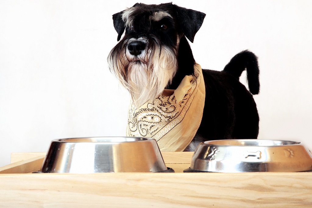 Представители этой породы не слишком привередливы в еде, однако натуральный рацион должен состоять из мяса и субпродуктов не менее чем на 70%. Остальная часть рациона может включать каши, овощи и творог. Каждые три месяца стоит давать витамины. Важно помнить, что избыток йода в рационе может привести к желтизне шерсти, что является недостатком для цвергшнауцеров.