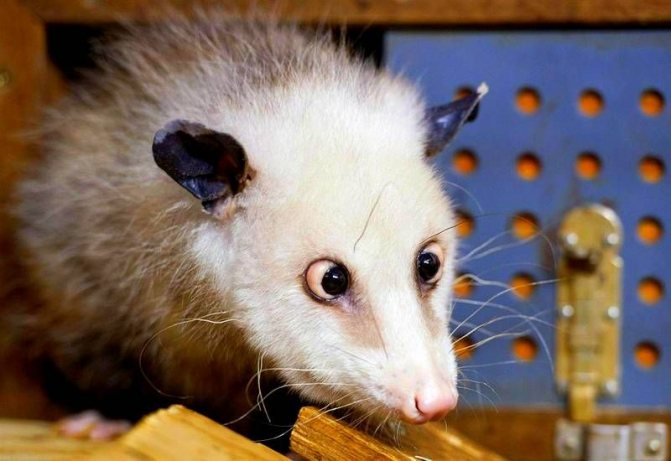 Опоссум ростом с домашнюю кошку, с короткими лапами, острой, светлоокрашенной мордой и голыми ушами с розоватыми кончиками .