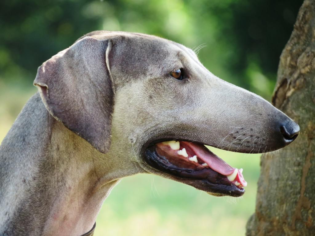 - Голова. Сухая, узкая, небольшая относительно туловища. При взгляде сверху заметно, что она имеет клиновидную форму. Спинка носа наклонная, часто с горбинкой. Губы тонкие, плотно прилегают друг к другу. Зубы крупные, белые, в правильном прикусе. Цвет мочки носа зависит от окраса шерсти. При темном она черная, при светлом – кофейная. Нос никогда не бывает вздернутым.
